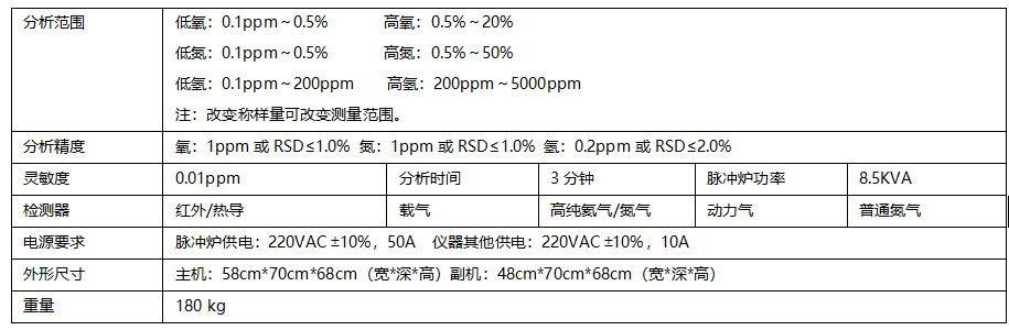 仪器可配置两个独立的红外检测通道,分别检测高氧和低氧,一个热导检测器,实现氮和氢高、低范围的检测。脉冲炉采用循环水冷却,样品在高功率脉冲炉的石墨坩埚中可加热到 3500℃高温。该仪器具有灵敏度高、性能好、测量范围宽和分析结果准确可靠等优点。氧氮氢分析仪可广泛应用于钢铁冶金、粉末冶金、有色金属、陶瓷材料、电子材料、地质矿产、航空航天、科研院所、第三方检测等领域的固体无机材料中氧、氮、氢含量检测。