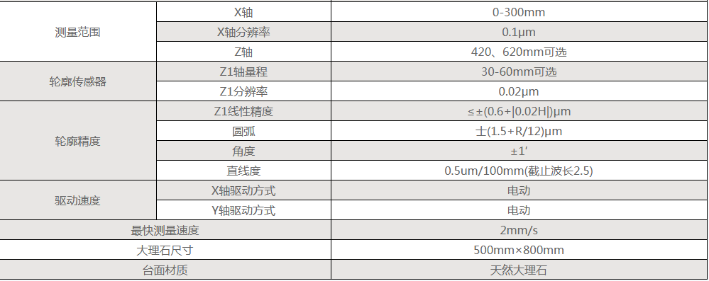 本仪器测量原理为直角坐标测量法,即通过X轴、Z1轴传感器,测绘出被测零件的表面轮廓的坐标点,通过电器组件,将传感器所测量的坐标点数据传输到上位PC机,软件对所采集的原始坐标数据进行数学运算处理,标注所需的工程测量项目。